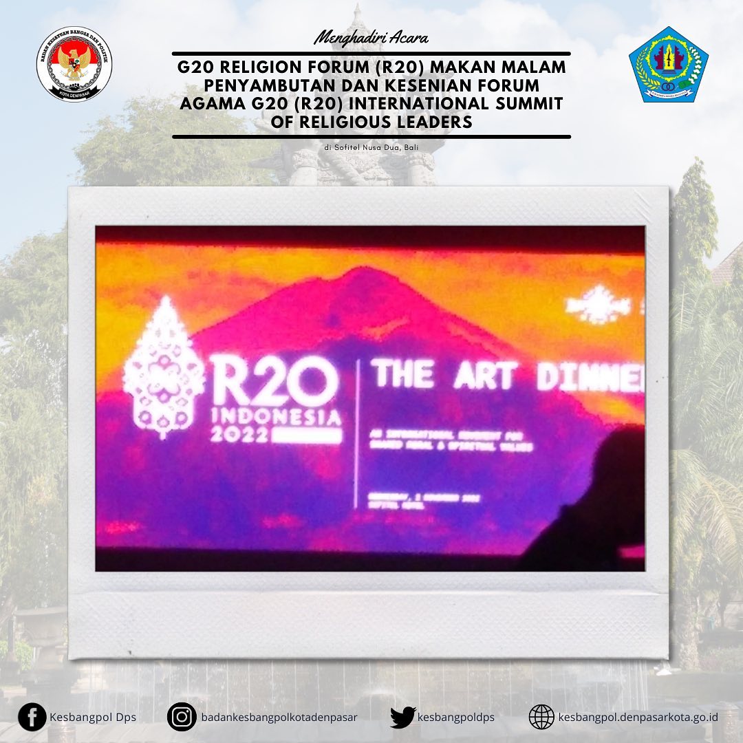 Sekretaris Badan Kesatuan Bangsa dan Politik Kota Denpasar menghadiri acara G20 RELIGION FORUM (R20) Makan Malam Penyambutan dan Kesenian Forum Agama G20 (R20) International Summit of Religious Leaders yang diselenggarakan di Sofitel Nusa Dua, Bali.